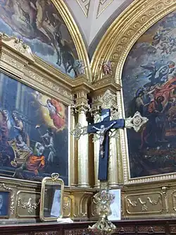 The last chapel next to the door of this nave has a Neoclassical style altarpiece, the side murals are covered with two paintings of the Passion, from the 17th century, The Descent and The Calvary, there is controversy about their authorship, on the one hand it is attributes it to the Spanish artist Rodrigo de la Piedra and on the other to Antonio de Santander.[8]