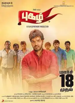 Pugazh (transl. Fame) is a 2016 Indian Tamil-language action thriller film written and directed by Manimaran and co-produced by Varun Manian. The film stars Jai and Surbhi, while Karunas, RJ Balaji, G. Marimuthu, and Piraisoodan play supporting roles. The music was composed by Vivek-Mervin.[1] with cinematography by Velraj and editing by G. B. Venkatesh. The film released on 18 March 2016 to mixed reviews from critics.