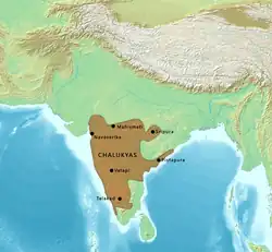 Satyashraya ("refuge of truth"), a hereditary biruda (epithet) of Pulakeshin, was commonly used as a substitute for his name in the dynasty's records.[2] He was the dynasty's most celebrated ruler, because of which the subsequent rulers called their dynasty Satyashraya-kula ("family of Satyashraya").[7]