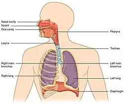 - ^ a b c Labiris, N. R.; Dolovich, M. B. (2003). "Pulmonary drug delivery. Part I: Physiological factors affecting therapeutic effectiveness of aerosolized medications: Physiological factors affecting the effectiveness of inhaled drugs". British Journal of Clinical Pharmacology. 56 (6): 588–599. doi:10.1046/j.1365-2125.2003.01892.x. PMC 1884307. PMID 14616418.