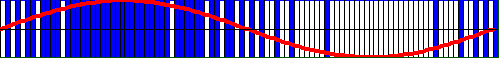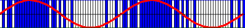 A single period of the trigonometric sine function, sampled 100 times and represented as a PDM bitstream, is: