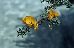 Pultenaea maritima, commonly known as coastal bush-pea[2] or coastal headland pea,[3] is a species of flowering plant in the family Fabaceae and is endemic to eastern Australia. It is a prostrate, mat-forming shrub with elliptic, or oblong to spatula-shaped leaves and pea-like flowers.