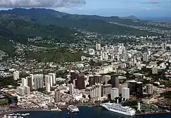Punchbowl Crater is an extinct volcanic tuff cone located in Honolulu, Hawaii, United States. It is the location of the National Memorial Cemetery of the Pacific.