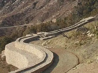 The fortress walls are around 3 to 4 m (9.8 to 13.1 ft) high. Many parts have collapsed, but the north and west sections are in good condition. Various parts of the wall were constructed in different methods, indicating the different repairs and renovations made over time.[2]
