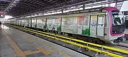 Initial operations on the Purple Line began with twenty-one 3-coach trains. As loads increased with increasing ridership, all trains were converted to six coaches.[58] The first six car train was introduced on the Purple Line on 23 June 2018.[59] The additional coaches were supplied by BEML at a cost of Rs 8.8 crore each.[60]