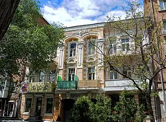 89/57 The House of Ivan Zvorykin was built in 1914 by the architect Vasily Popov. The mayor of Rostov-on-Don Ivan Zvorykin and the playwright Vladimir Kirshon lived here. The building is considered to be an object of cultural heritage.[7]