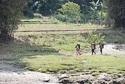 Hkamti Long (also known as Khamti Long) is the former name of one of the outlying Shan States.[3] It was a princely state around the city of Putao settled by the Khamti Shan people. The name means "Great Place of Gold" in the Khamti Shan language.[4] Nowadays, there are Rawang and Lisu people, who are already regarded as Kachin nationalities. The seven-day-trek to West-Putao's mountain region, in which explorers found that there are Taron people ethnic whose height are lower than four feet. The population of this ethnic minority is so few nowadays that they are facing the threat of being extinct. The area covered by Hkamti Long may have included parts of what is now Kachin State (where Putao is located) as well as that of Shan State.[5]