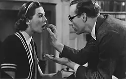The resulting Pygmalion scenario by Cecil Lewis and W. P. Lipscomb removed exposition unnecessary outside a theatrical context and added new scenes and dialogue by Shaw. Ian Dalrymple, Anatole de Grunwald and Kay Walsh also made uncredited contributions to the screenplay. A long ballroom sequence was added, introducing an entirely new character, Count Aristid Karpathy (seen both here and in the musical My Fair Lady, named as Professor Zoltan Karpathy – mentioned in the final scene of the original play, but with no name or onstage appearance), written wholly by Shaw. He and his fellow writers also managed to retain the controversial line "Not bloody likely!" from the play's text, making Hiller possibly the first person to utter that swear word in a British film[3] and giving rise to adverts for the film reading "Miss Pygmalion? Not ****** likely!".