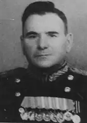 {{cite book}}: CS1 maint: location missing publisher (link) - Main Personnel Directorate of the Ministry of Defense of the Soviet Union (1964). Командование корпусного и дивизионного звена советских вооруженных сил периода Великой Отечественной войны 1941 – 1945 гг [Commanders of Corps and Divisions in the Great Patriotic War, 1941–1945] (in Russian). Moscow: Frunze Military Academy. OCLC 35371247.