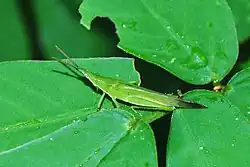 Pyrgomorphidae is a family of grasshoppers in the order Orthoptera; it is the only family in the superfamily Pyrgomorphoidea.[1] Pyrgomorphidae are found worldwide in tropical and warm temperate regions (though none are from US mainland),[1] but the vast majority of the family's approximately 500 species are from Africa, Asia and Australia.[2] Their name is probably derived from pyrgos (Greek: Πύργος) meaning "tower": a reference to the form (morph) of the head in the type genus Pyrgomorpha and other genera.