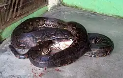 - ^ a b Shine R, Harlow PS, Keogh JS, Boeadi (1998). "The influence of sex and body size on food habits of a giant tropical snake, Python reticulatus". Functional Ecology. 12 (2): 248–258. Bibcode:1998FuEco..12..248S. doi:10.1046/j.1365-2435.1998.00179.x. S2CID 46957156.