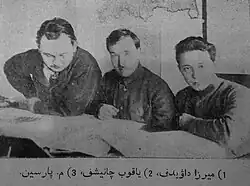 Qawi Näcmi served as the executive editor of the newspaper from 1928 to 1933.[8] Zakir Gali (Galiev) served as the editor-in-chief of Qьzьl Armies from 1934 to 1936.[9] By 1928, the poet Nur Bayan worked at the literary section of the newspaper.[10] In 1933, the poet Fatih Karim worked at the editorial office of Qьzьl Armies.[11]