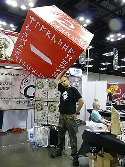 The Q WORKSHOP dice are known for their distinct style and engravings, featuring various motifs such as : Elven, Dragon, Runic. In 2007 Q WORKSHOP begun production of licensed dice sets, starting with Call of Cthulhu dice set on license from Chaosium Inc.,[1] and following up in 2008 with Munchkin dice on license from Steve Jackson Games[2] and Pathfinder dice set on license from Paizo Publishing. In 2010, Q WORKSHOP produced a new licensed product based on Pinnacle Entertainment Group's Deadlands role-playing game.[3]