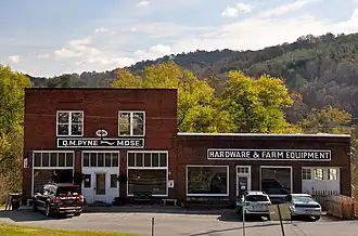 Q. M. Pyne Store, also known as the Palisades Restaurant, is a historic country store located at Eggleston, Giles County, Virginia. It consists of two multi-story, brick masonry structures, attached side by side and embanked into a hillside. The north building was completed in 1926 and appended with a similar building on the south side about 1929. The north building is three stories and measures 70 feet deep and 40 feet wide. It has a flat roof, parapet and sign tablet, with a windowed storefront below. The building housed C.C. Whittaker & Company, a general store; a Chevrolet Dealership, with a showroom and a place to repair cars; a doctor's office; and the United States Post Office until it moved to its new location in the 1980s.[3]