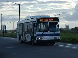 On January 9, 2006, the MTA Bus Company took over the operations of the Green Bus Line routes as part of the city's takeover of all the remaining privately operated bus routes.[65][66][67] Following the takeover, on March 4, 2007, several intermediate stops on the Q35 route were eliminated on Flatbush Avenue in Brooklyn between Kings Plaza and Brooklyn College. The changes reduced the number of stops on this stretch of the route to five in either direction.[68] In October 2007, overnight service on the Q35 was suspended due to construction on the Marine Parkway Bridge.[69] On May 13, 2008, a city-subsidized Rockaway ferry route operated by New York Water Taxi began service between Riis Landing and Pier 11/Wall Street in Manhattan.[70] On that day, the New York Daily News conducted an informal race between the ferry and the combined bus-subway trip between the Rockaways and Wall Street; the bus-subway trip utilized the Q35 route between Riis Park and Flatbush Avenue, and the 2 subway route to Manhattan.[71]