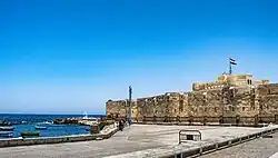 The Citadel of Qaitbay (or the Fort of Qaitbay; Arabic: قلعة قايتباي) is a 15th-century defensive fortress located on the Mediterranean sea coast, in Alexandria, Egypt. It was built from 1477 to 1479 AD (882–884 AH) by Sultan Al-Ashraf Sayf al-Din Qa'it Bay.[2] The Citadel is situated on the eastern side of the northern tip of Pharos Island at the mouth of the Eastern Harbour.[3]