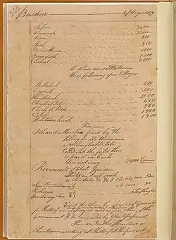 In June 1819,[43][44][45][46] European traveler George Forster Sadlier documented a comprehensive account of Qatif Castle, which had been established the previous year by Turki bin Abdullah Al Saud during the period of the Second Saudi State. Sadlier's memoirs provided a detailed description of the castle, the agricultural products cultivated in the surrounding region, the markets located nearby, the prevailing commercial conditions, and an estimate of the local population and the taxes remitted to the Ottoman Empire.[47][48][49][50]