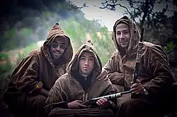 The qashabiya is associated with the mujahideen who fought during the Algerian War of Independence. The qashabiya was crucial in helping Algerian guerrillas withstand the harsh cold in the mountains while also allowing them to blend into their surroundings for camouflage. Nowadays the region of the Ouled Nail is renowned for crafting and wearing the qashabiya.[2]