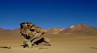 ![]() Árbol de Piedra ("stone tree") with Qhawana in the background | |
