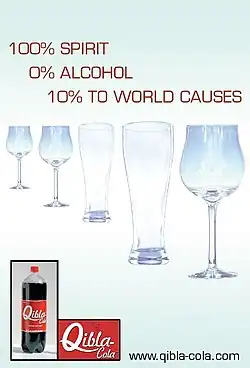 Qibla Cola was a cola-flavored carbonated beverage produced by the Qibla Cola Company, based in Derby, England. The company differentiated itself and its products from its rivals by making an ethical stance in all its operations including giving 10% of its profits to worthy charitable causes.[1] The company expanded distribution into North America, Netherlands, Pakistan and Malaysia before the UK company went into receivership in September 2005.[2]