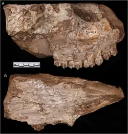 In 1930 the American Museum of Natural History conducted an excavation during their "Third Asiatic Expeditions" to outcrops of the Tunggur Formation in Inner Mongolia, China. At this time, workers collected several fragmentary giraffid cranial and mandibular bones with associated teeth in the 'Wolf Camp' locality. In 1936, American paleontologist Edwin H. Colbert described these remains as belonging to a new species in the giraffid genus Palaeotragus, which he named Palaeotragus tungurensis, the specific name he chose referencing the discovery of the remains in the Tunggur Formation. The holotype specimen, AMNH 26582, comprises a partial skull with teeth. While the specimen is incomplete, enough remains to determine the absence of ossicones, suggesting it came from a female individual; this species, like modern giraffes, was sexually dimorphic, with males having large ossicones. In his description, Colbert deliberated on assigning the remains to a distinct genus, but decided that they were more similar to Palaeotragus—and in some ways specifically P. expectans—than any other taxon.[1][2]