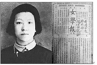 Qiu Yufang (裘毓芳), (1871–1904), courtesy name Meilu (梅侣), was a Chinese journalist and feminist, born in Wuxi (無錫), Jiangsu province, China. She is regarded as the first female journalist in China. A member of a progressive scholarly family, she started the paper Wuxi baihua bao (無錫白話報) with her uncle, Qiu Tingliang (裘廷梁), in 1898, where she became its leading editor and columnist.[1] The same year, she also became employed at the first women's paper in China, the Nubao (女學報) in Shanghai. She supported Western reforms in China, both in business, literature and education for women.