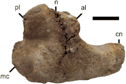 McFeeters and colleagues also remark that one of the listed autapomorphies for the type species of Qiupalong (a notch on the medial posterior process of the tibia) may not be a true autapomorphy because a similar condition is present in the specimen TMP 1994.012.1010, which has not been referred to any particular species. They also remark that, because of the poor preservation conditions of many ornithomimosaur fossils, it is difficult to determine whether or not other taxa possessed this trait.[2]