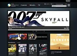 The interface through the Sony Entertainment Network Store was grouped into sections where users were able to see Top Rated Games, Latest Released Movies, DLC, Coming Soon, Deals and Offers, and PlayStation Plus. The top of the interface displayed the games, movies and TV. The store was the main home to where users could search for different movies, games and other media.[10]