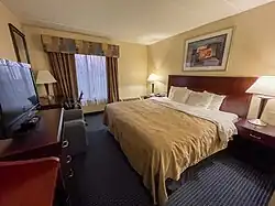 Quality Inn is an American multinational chain of hotels based in Rockville, Maryland. It is a subsidiary of Choice Hotels which has operations in more than 40 countries. Quality Inn is the founding brand of Choice Hotels International with more than 1,800 hotels worldwide, as of 2024.[1][2][3]