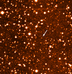 To ascertain Quaoar's orbit, Brown and Trujillo initiated a search for archival precovery images. They obtained several precovery images taken by the Near-Earth Asteroid Tracking survey from various observatories in 1996 and 2000–2002.[22] In particular, they had also found two archival photographic plates taken by astronomer Charles T. Kowal in May 1983,[25] who at the time was searching for the hypothesized Planet X at the Palomar Observatory.[27][28] From these precovery images, Brown and Trujillo were able to calculate Quaoar's orbit and distance. Additional precovery images of Quaoar have been later identified, with the earliest known found by Edward Rhoads on a photographic plate imaged on 25 May 1954 from the Palomar Observatory Sky Survey.[1][3]