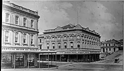 Named after Queen Victoria, Queen Street was an early development of the new town of Auckland (founded in 1840), although initially the main street was intended to be Shortland Street, running parallel to the shore of Commercial Bay.[1] The early route of Queen Street led up the middle of a gully following the bank of the Waihorotiu Stream (later bounded in as the 'Ligar Canal'). This canal was culverted beneath the street from the 1870s onward, allowing for further development of the street to be undertaken. The course of the stream is still reflected today in the slight bend of lower Queen Street. From north of Shortland Street, Queen Street is built on land reclaimed from the sea in the late 19th century (see Auckland waterfront article).