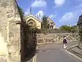 At the north-western end, the lane continues as New College Lane, named after New College to the north of Queen's Lane. There is a barrier in the road at this point to prevent through traffic.