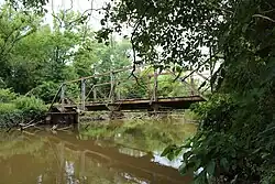 Numerous bridges have been built on this site that once served as a main road connecting Anne Arundel County to Prince George's County.[1] The first one was built in 1755 and by 1797 another wood bridge was built by local carpenter Colmor Duvall, only to be destroyed by a flood in June 1804.[1] In 1804, the bridge was immediately rebuilt.[1] The current structure was built about 1890 and was closed after the Anne Arundel span of the bridge collapsed due to an overloaded truck, circa 1960.[1] It remained open for pedestrian use until 2007 and remains standing, though fenced now preventing it from even allowing pedestrian use between county park land on both sides of the river.