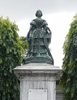 The Queen Isabel II Statue (Filipino: Bantayog ni Reyna Isabel II or Monumento ni Reyna Isabel II; Spanish: Monumento a la Reina Isabel II) is located in front of Puerta Isabel II in Intramuros, Manila, Philippines. It is made of bronze and was funded by donations collected from the city in 1854 and 1855. Ponciano Ponzano, a Spanish sculptor was commissioned to do the work. It was erected amidst festive ceremonies on 14 July 1860 near Teatro Alfonso XII in Arroceros in what is now Plaza Lawton (now Liwasang Bonifacio).