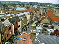 Queen Street is a pedestrianised shopping street in central Oxford, England.[1][2] It is one-way (west to east) for buses and taxis, two-way for cyclists outside main shopping hours, and forbidden for cars. It runs west from the centre of Oxford at Carfax. Here it adjoins Cornmarket Street to the north (also pedestrianised), the High Street continuing east, and St Aldate's to the south.