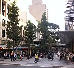 The Queen Street Mall is a pedestrian mall located on Queen Street in Brisbane, Queensland, Australia.[1] The mall extends approximately 500 metres (1,600 ft) from George Street to Edward Street, and has more than 700 retailers over 40,000 square metres (430,000 sq ft) of retail space, which includes six major shopping centres. It was intended to bring more people into the central business district.