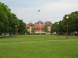 Before Queens College was established in 1937, the site of the campus was home to the Jamaica Academy, a one-room schoolhouse built in the early 19th century, where Walt Whitman once worked as a teacher.[3] The building was located on Flushing-Jamaica Road (later renamed Kissena Boulevard). Jamaica Academy became public in 1844.[4] In 1909, the New York Parental School, a home for troubled boys, opened on the land surrounding the future site of Queens College and incorporated Jamaica Academy on its campus. Buildings such as Jefferson Hall (named after Thomas Jefferson) were used as both dormitories and classrooms.[5]