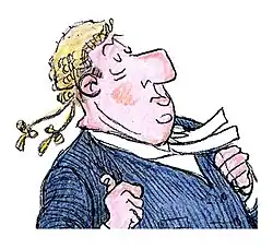 Sir Geoffrey Bentwood KC is the main protagonist of the comic strip. He is a leading silk, Head of Chambers, part-time recorder and all-around master of the legal universe. Extremely pompous, Sir Geoffrey is obsessed with law in general, and with being elevated to the High Court in particular. Even his family call him "Your Honour".[4]