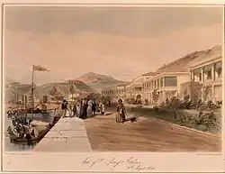 Queen's Road East was first developed into a European commercial and residential centre after the arrival of the British in 1841. It had become a mainly Chinese residential, labouring and shop-keeping community by the 1860s.[1]