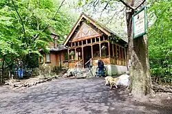 Queen's Wood was once called Churchyard Bottom Wood, and was originally part of the Great Forest of Middlesex. It was said to be the site of a plague pit during the Great Plague of London, although evidence suggests if there was a plague pit it was just outside the boundaries of the current wood.[1] In 1898 it was purchased from the Ecclesiastical Commissioners by Hornsey Urban District Council, opened to the public by Princess Helena, Duchess of Albany, and renamed Queen's Wood in honour of Queen Victoria.[2]