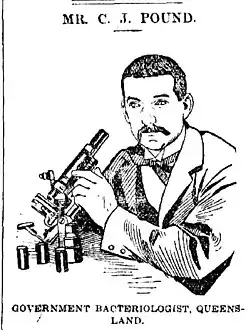 In November 1893 it was reported that the Colonial Secretary, Horace Tozer, had "decided to establish a Stock Institute in Brisbane for pathological and bacteriological purposes", and that Charles Joseph Pound, who had conducted a microscopy class in Brisbane, was preferred as scientist to take charge (Adrien Loir being unavailable).[14] C. J. Pound FRMS had been principal assistant to Edgar Crookshank at Britain's first bacteriology laboratory, King's College London, and briefly studied vaccines at the Pasteur Institute in Paris.[15] Establishment and maintenance costs were paid out of the Brands and Sheep Fund and a building in Turbot Street (Brisbane central business district) was leased for the institute.[16]