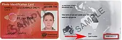 ![]() Front and back of a Queensland photo identification card, card number highlighted | |