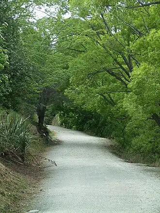 This is a route that encircles Lake Hayes. There are various points it can be started from including the Lake Hayes Pavilion[3] next to State Highway 6 and the Picnic area at the north of the lake accessed via Arrowtown Road and also Rutherford Road (off Speargrass Flat Road).[4] Was originally called the Lake Hayes Loop then the Lake Hayes Circuit but currently referred to as the Lake Hayes Trail.[5] This track connects to the nearby Lake Hayes Estate residential sub-division.