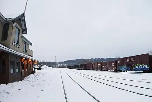 Quesnel station in Quesnel, British Columbia, Canada is a railway station which is used by the Rocky Mountaineer train service. The station is used on the Rainforest to Gold Rush route that links Whistler to Quesnel. Service is infrequent and only occurs several days per month.[2]