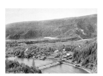 By the mid-1870s most of the population had left, but a small, stable group of Chinese miners and merchants remained in Quesnel Forks which supported a widely dispersed mining community. Many of these people came from the Four Counties region of Guangdong Province, South China. Following completion of the Canadian Pacific Railway through Ashcroft in 1885 their population increased when discharged Chinese railroad labourers sought to make a living from gold mining. They were supported by a branch of the Chee Kung Tong Association who erected a two-storey building in the village. During that period the region contained the third largest group of Chinese residents after Victoria and Nanaimo. The CPR also facilitated a hydraulic mining boom in the Cariboo, delivering large mining equipment such as water canon and metal for pipes to Ashcroft. From there, ox teams and stage coaches transported equipment and mining speculators up the Cariboo Road to The Forks. The Bullion Pit mine nearby produced $1,233,936 (1900 dollar value) over eleven years and attracted large numbers of itinerant men who placed heavy demands on the resources of the village. The horse trail to the Cariboo Road was widened into a wagon road and the Quesnel Forks Bridge strengthened to accommodate heavy wagons in 1895. In that same year a new jail was built at the rear of the Government Agent's house (shown at the head of the bridge in the above photo which should be dated 1899) and the land around these buildings kept vacant in case of fire. The town was not abandoned until the 1950s.