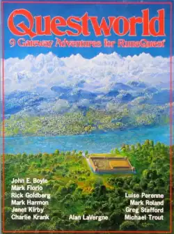 Questworld was written by John E. Boyle, Mark Florio, Rick Goldberg, Mark Harmon, Janet Kirby, Alan LaVergne, Greg Stafford, and Michael Trout, with art by Luise Perenne. It contains