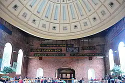 The main building is flanked by 4+1⁄2-story brick and granite buildings, the North Market and the South Market. Part of the market's original development, these buildings have been more extensively altered than the main building.[3] The entire complex was designated a National Historic Landmark and listed on the National Register of Historic Places in 1966.[1] The central domed building was designated a Boston Landmark by the Boston Landmarks Commission in 1996. The North and South Market buildings are pending Boston Landmarks as of 2025.[4]