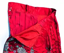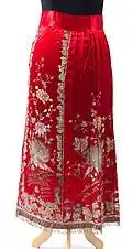 The mangchu skirt, sometimes literally translated as "Dragon skirt" in English, was a skirt decorated with Chinese dragons and/or Chinese phoenixes or with mang ("python").[22] The mangchu could typically vary in colour; however, red and green were the most common colours used. The mangchu was typically paired with the mangao jacket.[22]