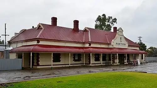 In anticipation of the completion of the Trans-Australian Railway across the Nullarbor Plain in 1917, and the line via Quorn becoming part of the East-West route, a new station opened in 1915. In 1937, the East-West services were diverted to a new route via Port Pirie.[1][4]