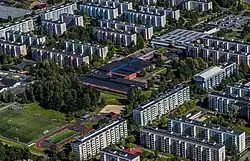 ![]() September 2015 aerial photograph of Råslätt, with Råslätts IP seen to the bottom left. | |